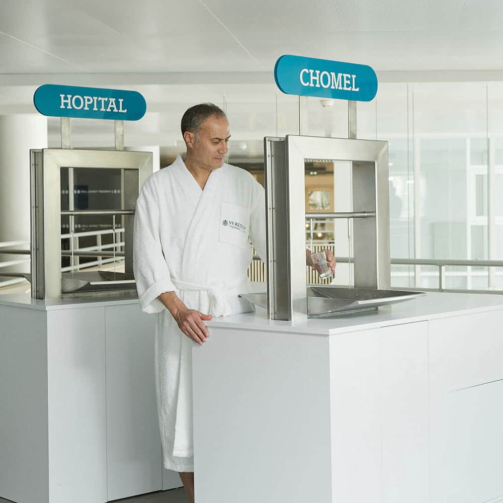 • 4 soins thermaux par jour en simple orientation : douche mixte : 1 douche à jet – 1 douche hépathique + 1 douche sous affusion + 1 aérobain